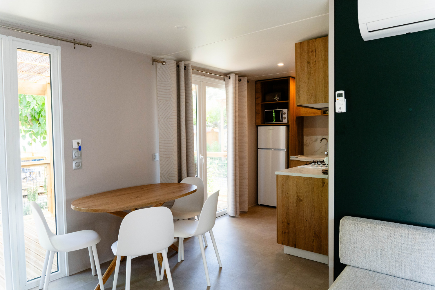 Moderno y acogedor, el Mobile Home Garbí combina comodidad y estilo. Ideal para relajarte tras un día de sol, mar y aventuras en la Costa Brava.